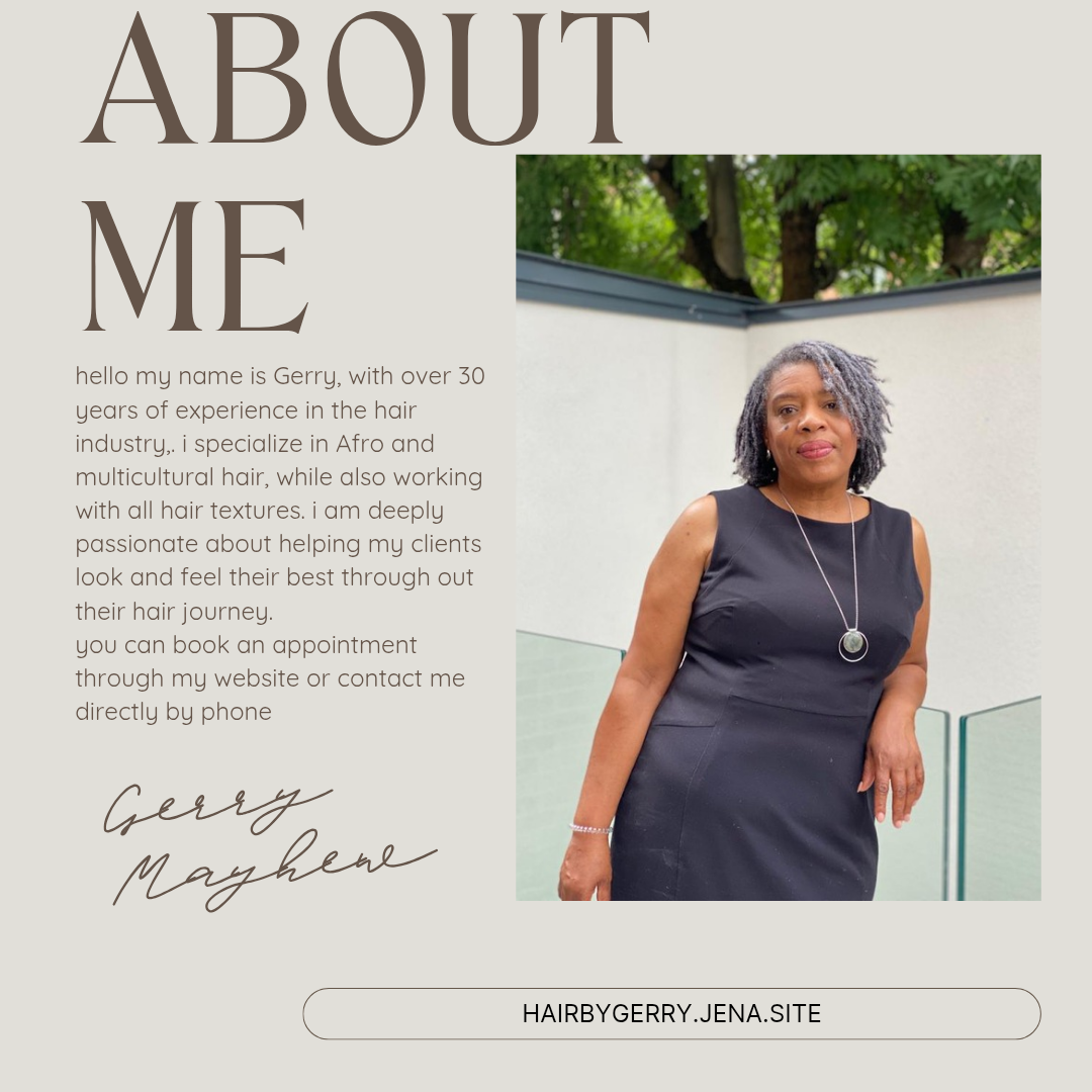 Hi there! Let me share a bit about myself. I’m passionate about serving the community and love reaching out to those who are less mobile by offering hair services right where they are once a month. I’m also deeply grateful to NHS staff and show my appreciation by offering a 10% discount on all salon hair services with Gerry.